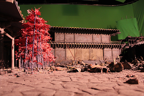 电影中有一艘沾满树叶的木船,船上成千上万的树叶都是由设计部门一片一片制作,并亲手粘上去的,细腻繁杂的手工致使最终呈现效果美轮美奂,把一场船上战斗戏衬托在一片金黄的落叶中,使美感极大升级的同时,更增加了影片中想要表达的浓郁的东方韵味。