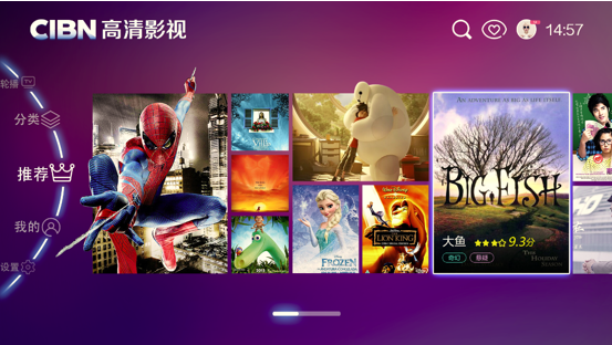 国广东方自主运营产品CIBN高清影视整合优酷及多家CP的优势资源,