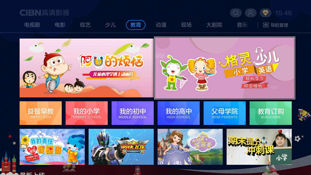 CIBN教育作为CIBN互联网电视的特色业务之一,以“精品内容+互动”为核心,以智能终端为外延,积极打造大屏教育服务品牌。除运营电视大屏精品内容,CIBN教育还成功推出多款智能终端产品,通过“互联网+电视+教学”的方式,实现TV端、PC端、手机端的三端融合。