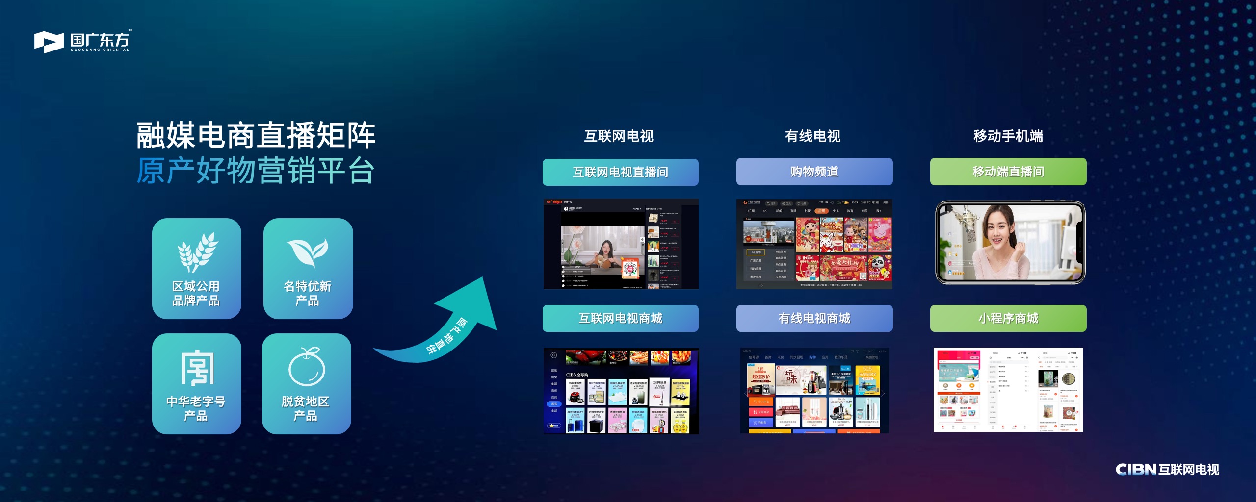 “中广直播间”大屏电商直播业务深度融合电商的便利性与大屏的沉浸感,为用户打造“视听+消费”一体化,大屏小屏互动的场景体验。将原产地文化、土特产与数字融媒矩阵进行深度融合,实现对互联网电视用户的有效触达。