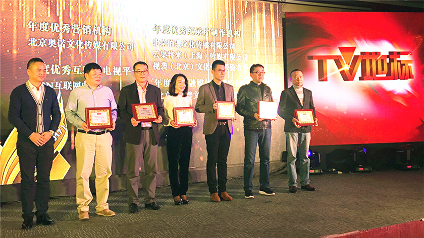 CIBN互联网电视副总经理王明轩(左三)上台领奖