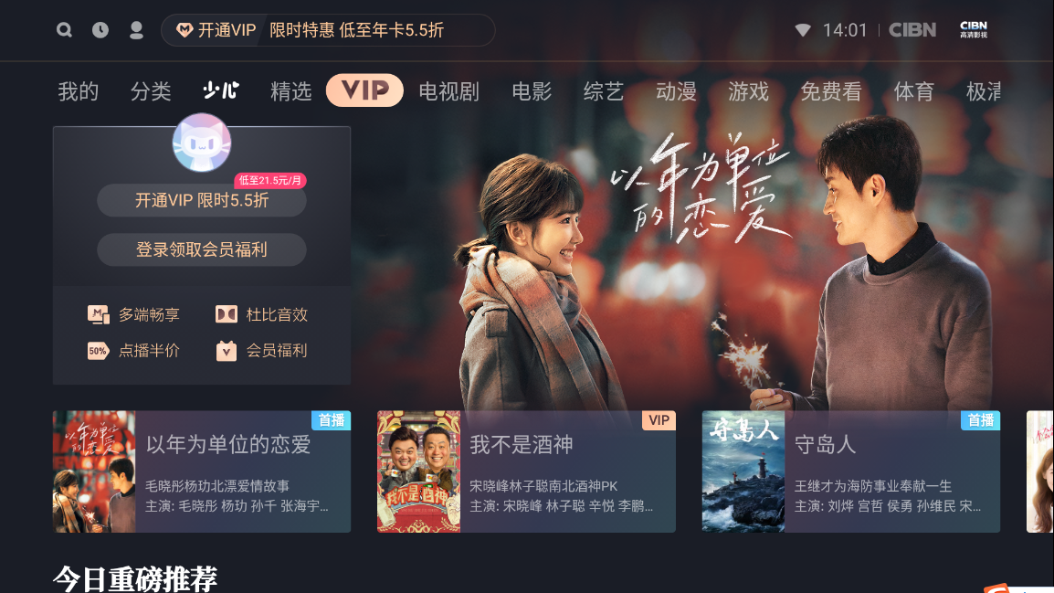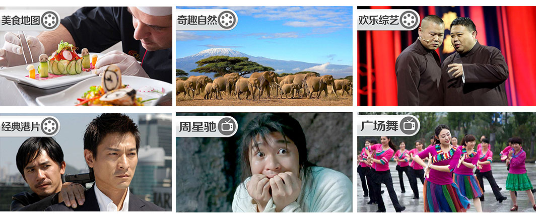 涵盖电影、电视剧、文娱、垂直类四大特色专区,满足家庭受众的基本观看需求。
