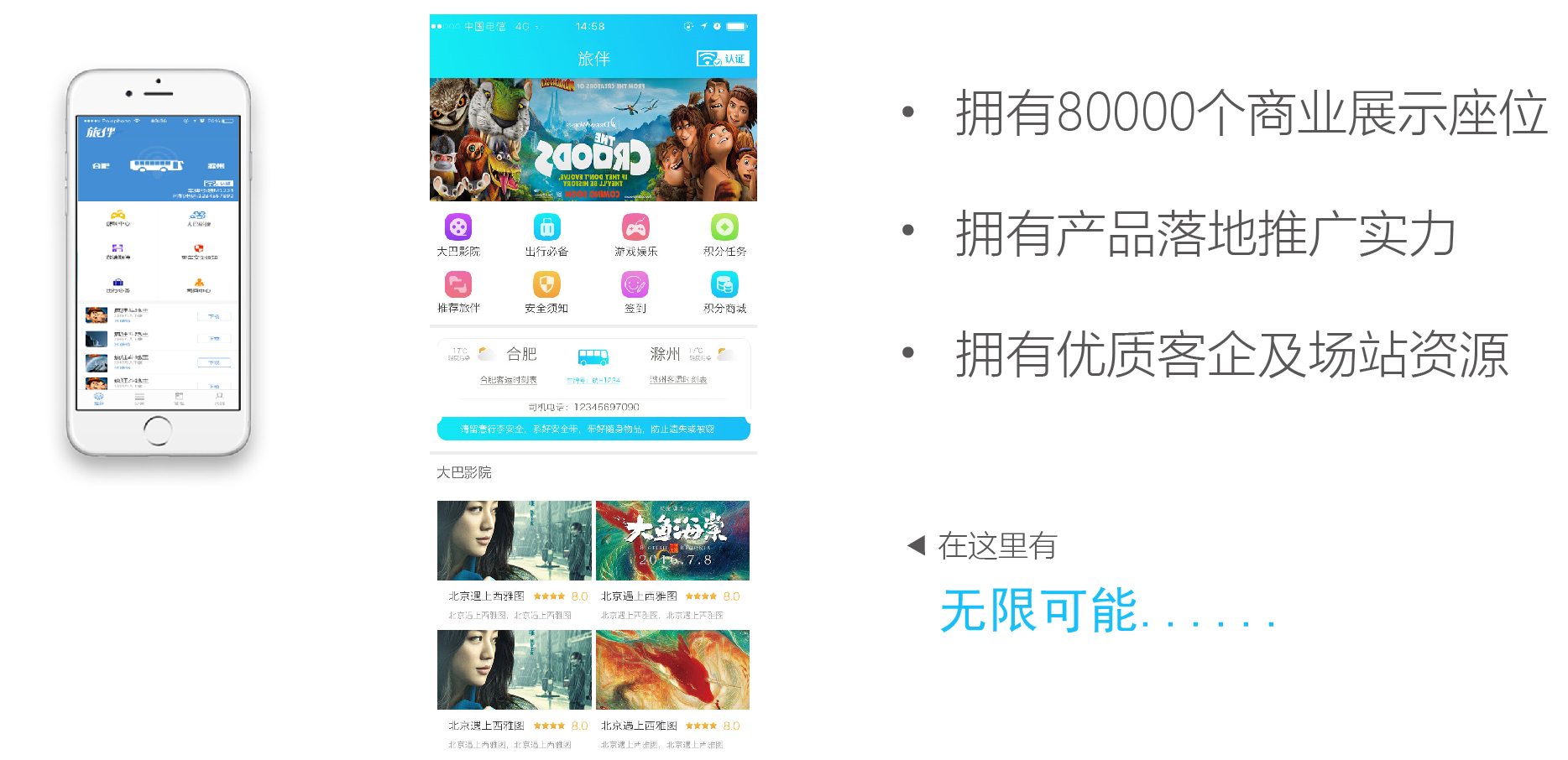 基于互联网+新媒体打造的车联网生态服务平台——“CIBN旅伴”,通过搭建车载WiFiI环境,为用户提供包括影音视频点播、APP娱乐下载、车内(车辆间)互动社交、地方LBS推送、客企交通服务、特定场景营销推广等六大专业及可持续性发展的商业服务内容,达成站与客、客与车、客与客、客与家之间信息互联互通的移动互联网特有场景服务。